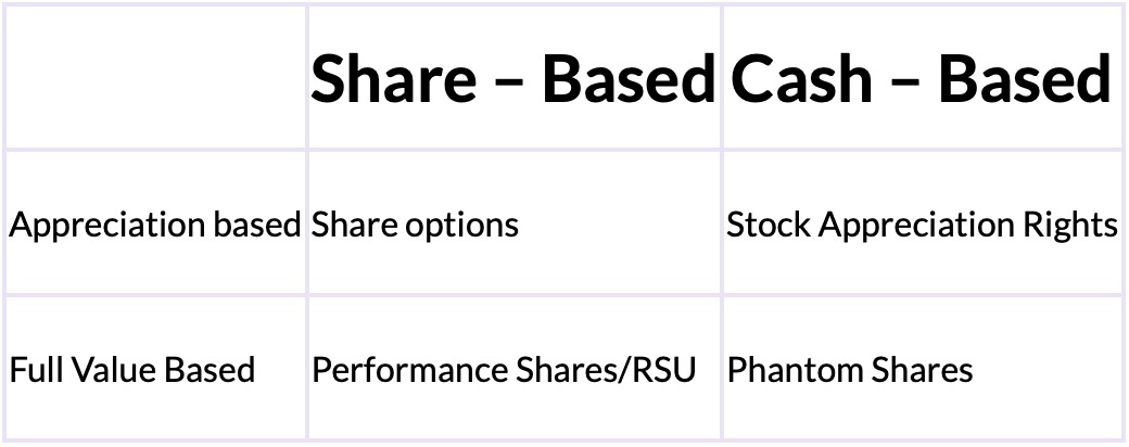 - Cash-based plans avoid diluting of shares as no real shares are being transacted